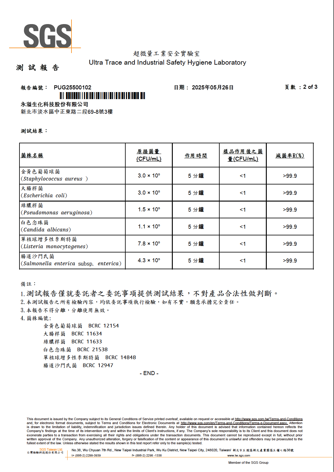 SGS 滅菌報告:PUG25500102